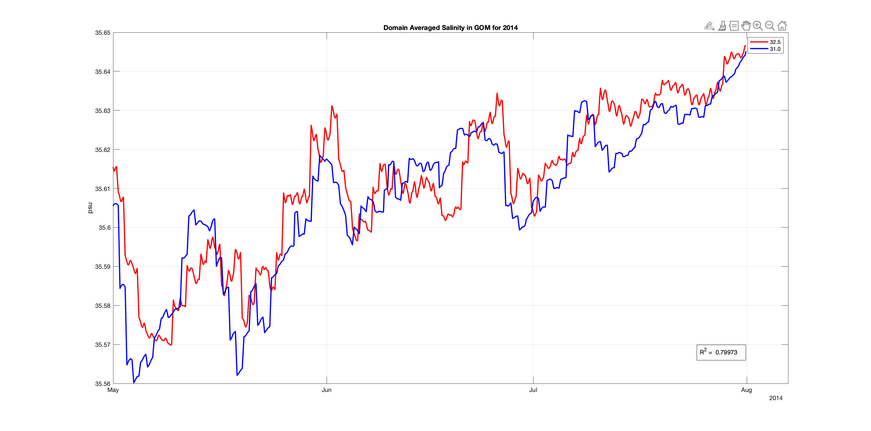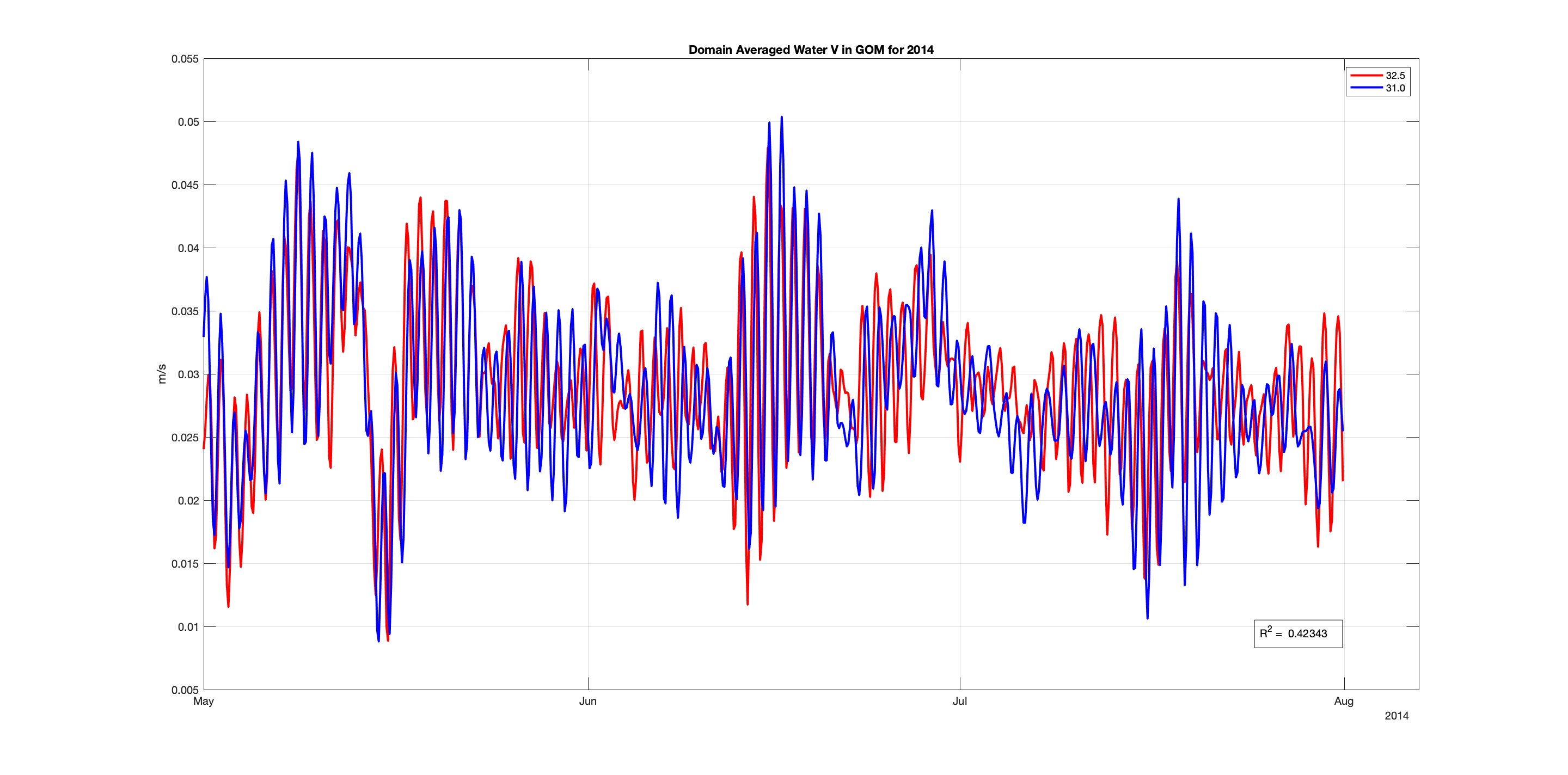 Comparing Experiments 31.0 & 32.5 in the GOM for May-July 2014