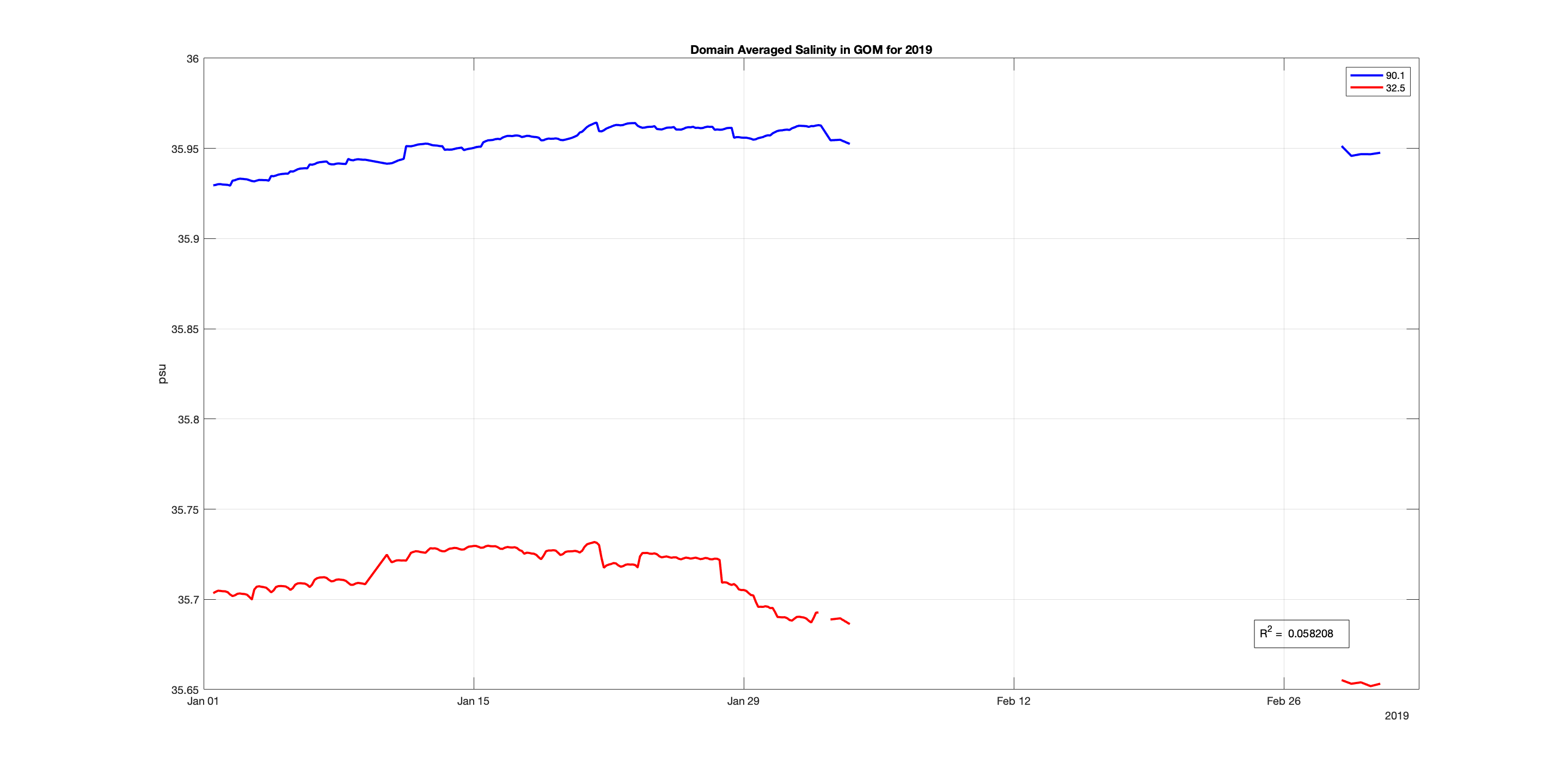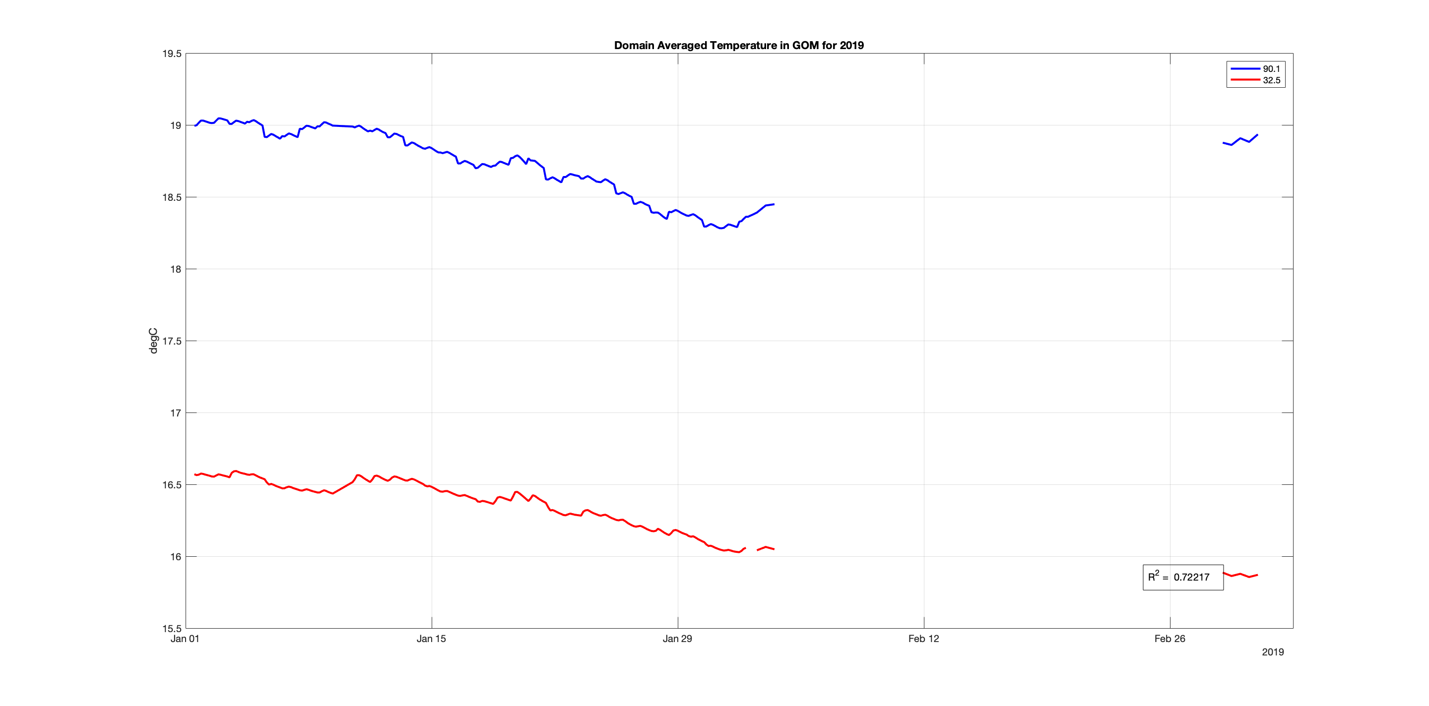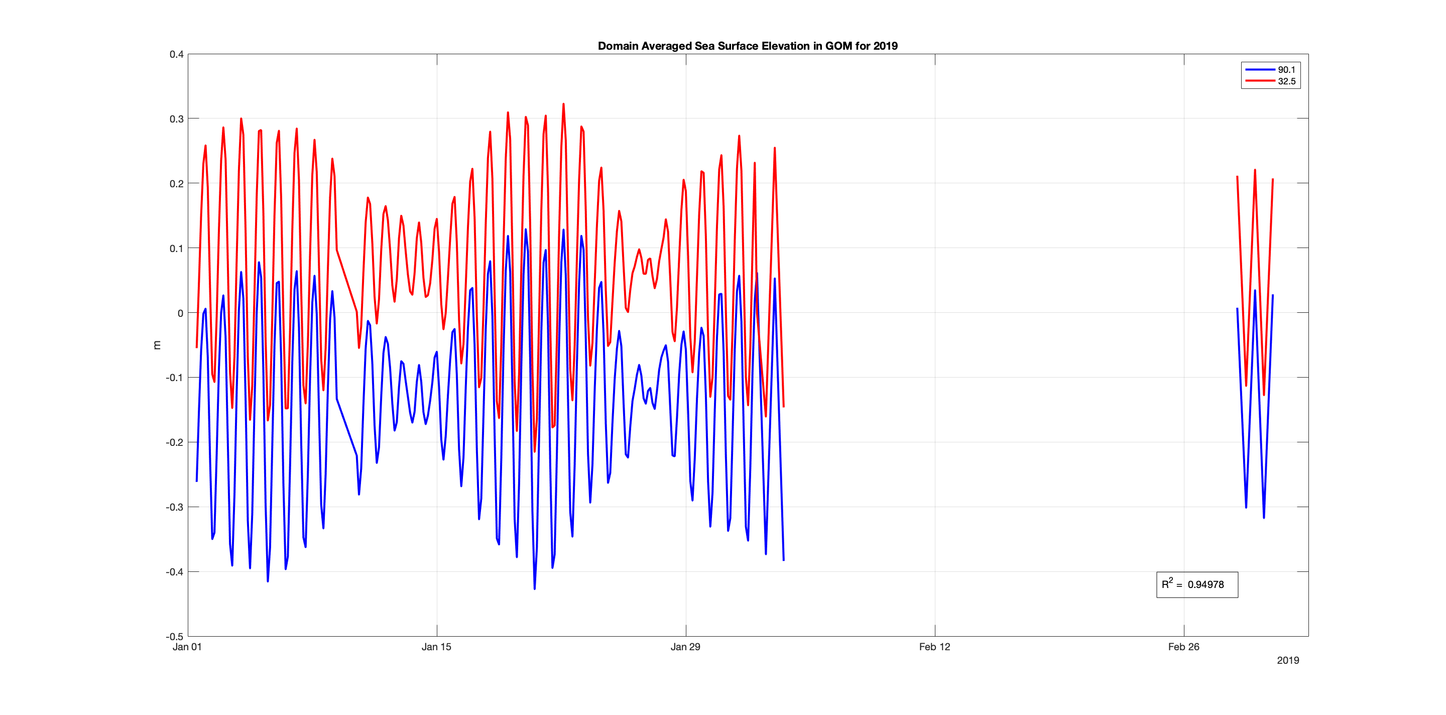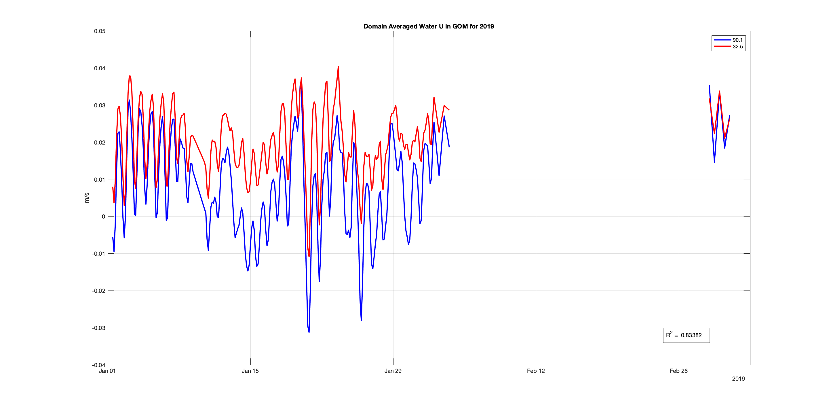 Comparing Experiments 90.1 & 32.5 in the GOM for January-March 2019